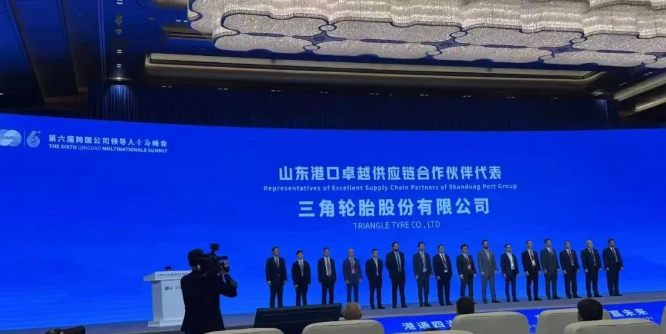 【炭黑產(chǎn)業(yè)網(wǎng)】6月23日消息,在近日于青島國際會議中心舉辦的“山東港口全球供應鏈合作伙伴大會”上,國內(nèi)輪胎行業(yè)領軍企業(yè)三角輪胎憑借其在全球供應鏈體系中的卓越表現(xiàn),榮獲“卓越供應鏈合作伙伴”稱號,成為該獎項16家獲獎企業(yè)中唯一的輪胎企業(yè)。此次盛會由山東省商務廳、交通運輸廳、青島市政府及山東港口集團共同主辦,是第六屆跨國公司領導人峰會的重要配套活動,吸引了全球航運、貿(mào)易及金融領域的廣泛關注。