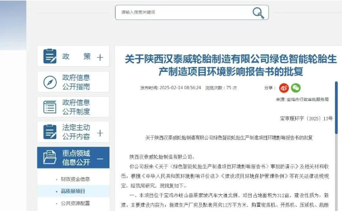 【炭黑產(chǎn)業(yè)網(wǎng)】6月27日消息,陜西岐山縣正迎來(lái)一個(gè)極具發(fā)展?jié)摿Φ漠a(chǎn)業(yè)項(xiàng)目——綠色智能全鋼子午線輪胎制造項(xiàng)目。該項(xiàng)目由陜西漢泰威輪胎制造有限公司傾力打造,選址于蔡家坡渭河以南區(qū)域,規(guī)劃占地面積為314畝,總投資額高達(dá)10億元,目前正按計(jì)劃有序推進(jìn)建設(shè)。