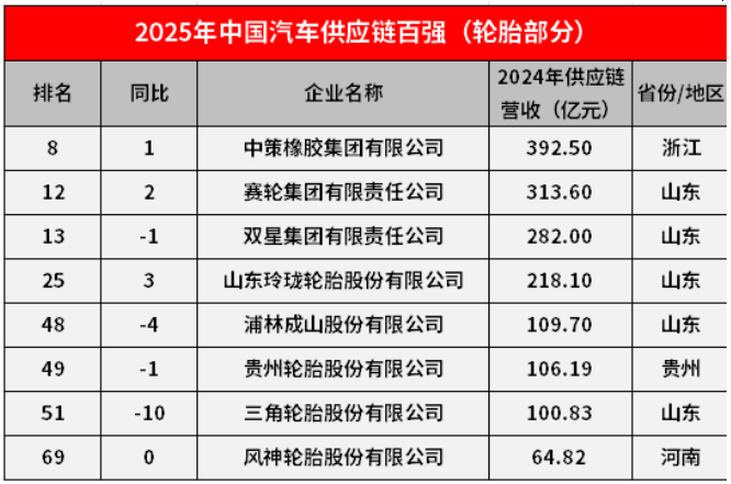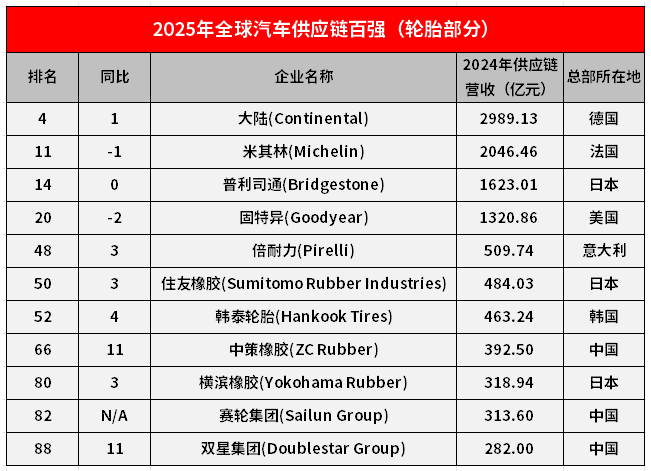 中國/全球汽車供應(yīng)鏈100強(qiáng)發(fā)布,16家輪胎企業(yè)上榜!