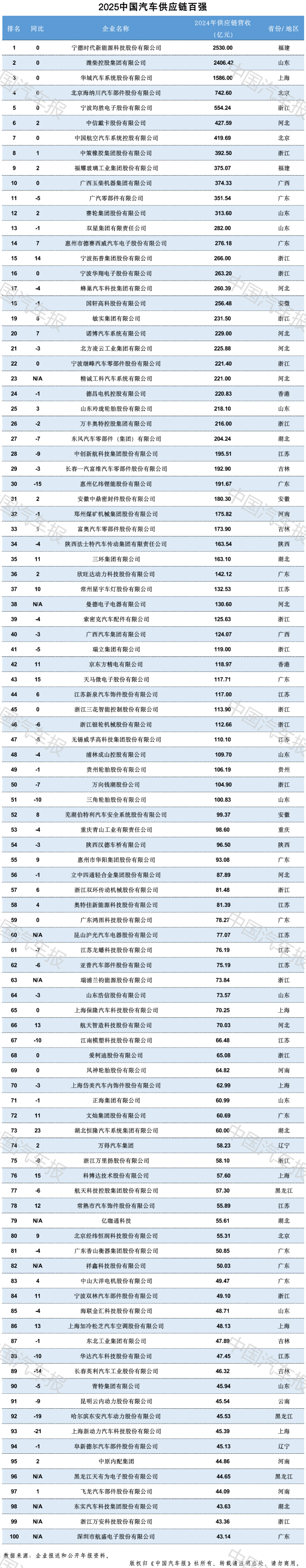 附:全球汽車供應(yīng)鏈百強(qiáng)、中國汽車供應(yīng)鏈百強(qiáng):