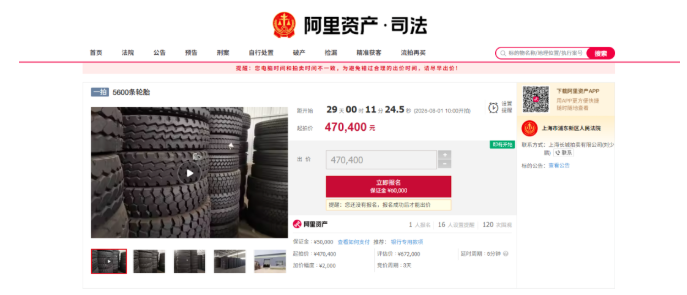 近日,阿里資產(chǎn)拍賣平臺發(fā)布一條司法拍賣,上海市浦東新區(qū)人民法院將于2025年8月1日對5600條輪胎進行網(wǎng)絡(luò)司法拍賣活動。