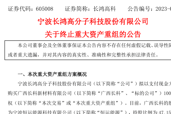 早在2023年,長(zhǎng)鴻高科就曾計(jì)劃收購(gòu)廣西長(zhǎng)科,但最終因市場(chǎng)環(huán)境變化等因素導(dǎo)致交易條件發(fā)生較大改變,雙方經(jīng)過(guò)多輪溝通和談判后,未能就交易方案中的核心交易條件達(dá)成一致意見,長(zhǎng)鴻高科遂決定終止籌劃該次重大資產(chǎn)重組事項(xiàng)。