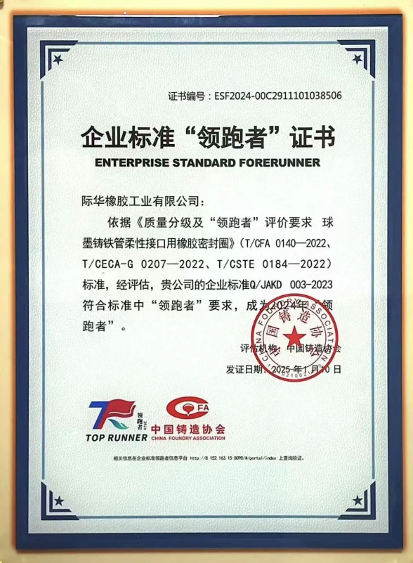 【炭黑產(chǎn)業(yè)網(wǎng)】7 月 9 日消息,際華橡膠工業(yè)有限公司近日收獲重磅榮譽(yù),其主導(dǎo)制定的企業(yè)標(biāo)準(zhǔn) Q/JAKD 003-2023 順利通過評(píng)審,成功斬獲企業(yè)標(biāo)準(zhǔn) “領(lǐng)跑者” 稱號(hào)。這一成果的取得,源于該標(biāo)準(zhǔn)符合《質(zhì)量分級(jí)及 “領(lǐng)跑者” 評(píng)價(jià)要求 球墨鑄鐵管柔性接口用橡膠密封圈》系列規(guī)范,并經(jīng)過中國鑄造協(xié)會(huì)的嚴(yán)格評(píng)估認(rèn)證。