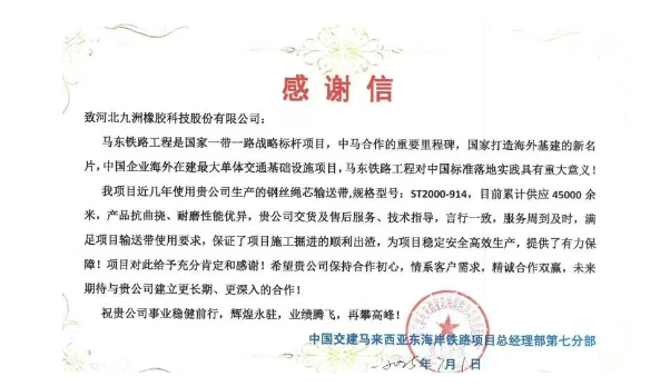 九洲橡膠助力東南亞第一長隧建設