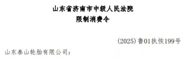 【炭黑產(chǎn)業(yè)網(wǎng)】7 月 30 日消息,2025 年 7 月 29 日,山東省濟(jì)南市中級人民法院發(fā)布限制消費(fèi)令,山東泰山輪胎有限公司因未按期履行高達(dá)數(shù)千萬元的給付義務(wù),其法定代表人武朋被依法采取限制高消費(fèi)措施。這一事件讓一起起始于 2014 年的金融借款合同糾紛再度走入大眾視野,給本就處于壓力之下的輪胎行業(yè)帶來了更多憂慮。
