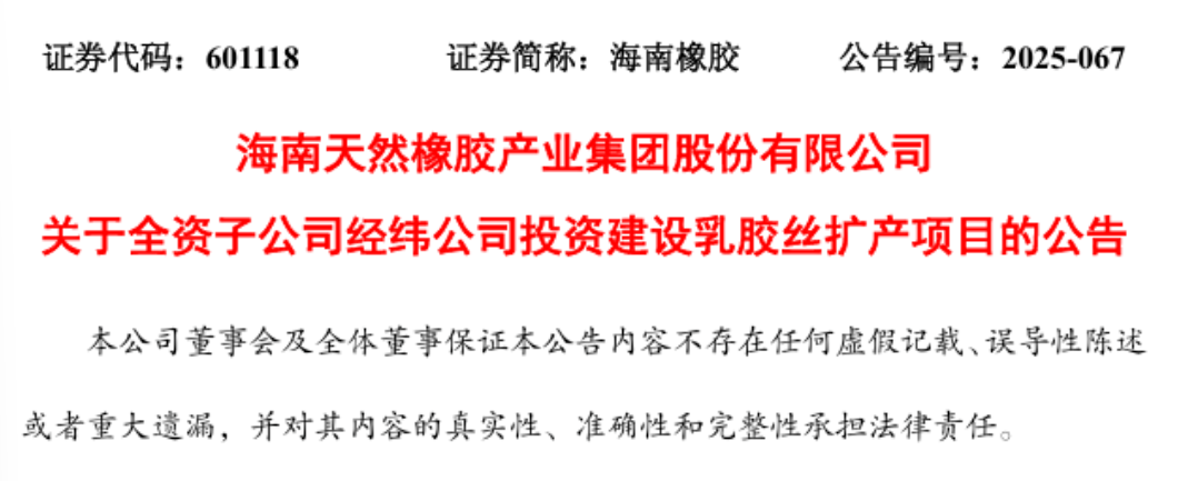 海南橡膠子公司,投 1.35 億建新項(xiàng)目!