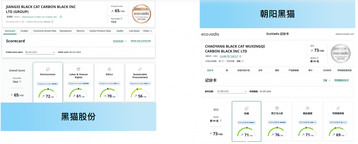 【炭黑產(chǎn)業(yè)網(wǎng)】11月18日消息,江西黑貓?zhí)亢诠煞萦邢薰?下稱“黑貓股份”)近期在EcoVadis企業(yè)社會責任評估中傳來捷報,其社會責任評級實現(xiàn)穩(wěn)步增長,從先前的63分提升至65分,連續(xù)兩年保持全球前35%的銅牌評級。與此同時,其下屬企業(yè)朝陽黑貓表現(xiàn)更為亮眼,評級從銅牌成功躍升至銀牌,躋身全球前15%行列。