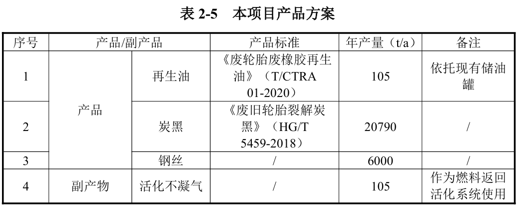 該項(xiàng)目生產(chǎn)所用原料為現(xiàn)有工程生產(chǎn)的粗炭黑及鋼絲,粗炭黑經(jīng)深加工處理后,將可轉(zhuǎn)化為約0.5%再生油、99%深加工炭黑、0.5%可燃?xì)?。該?xiàng)目建成后,可年加工處理21000噸粗炭黑,生產(chǎn)6000 噸鋼絲。