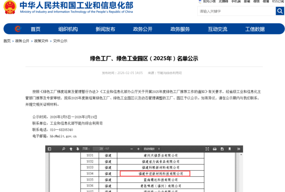 【炭黑產(chǎn)業(yè)網(wǎng)】2月27日消息,2月19日,國家工業(yè)和信息化部此前發(fā)布的《綠色工廠、綠色工業(yè)園區(qū)(2025年)》公示名單結(jié)束公示期。這份名單代表著中國制造業(yè)綠色轉(zhuǎn)型的頂尖水準(zhǔn),江蘇中宏環(huán)保旗下的福建中宏新材料科技有限公司,憑借在循環(huán)經(jīng)濟領(lǐng)域的出色實踐與持續(xù)創(chuàng)新,成功躋身“國家級綠色工廠”之列。