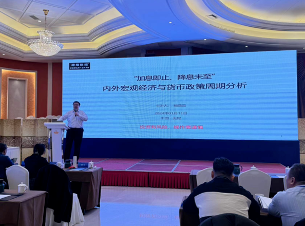 在1月11日上午上下游資源對接及圈內(nèi)交流會會場主題發(fā)言中,來自康楷數(shù)據(jù)首席經(jīng)濟(jì)學(xué)家楊敬昊,發(fā)表題為《“加息即止、降息未至” 內(nèi)外宏觀經(jīng)濟(jì)與貨幣政策周期分析》的報(bào)告,楊老師對2024年宏觀經(jīng)濟(jì)運(yùn)行總體判斷,全年來看:“前低后高,修復(fù)斜率年中最大,謹(jǐn)慎樂觀”。我國經(jīng)濟(jì)所處周期——復(fù)蘇階段。宏觀經(jīng)濟(jì)運(yùn)行從GDP、工業(yè)運(yùn)行情況、消費(fèi)、投資、人口、凈出口、風(fēng)險(xiǎn)提示等多方面進(jìn)行了詳細(xì)闡述。
