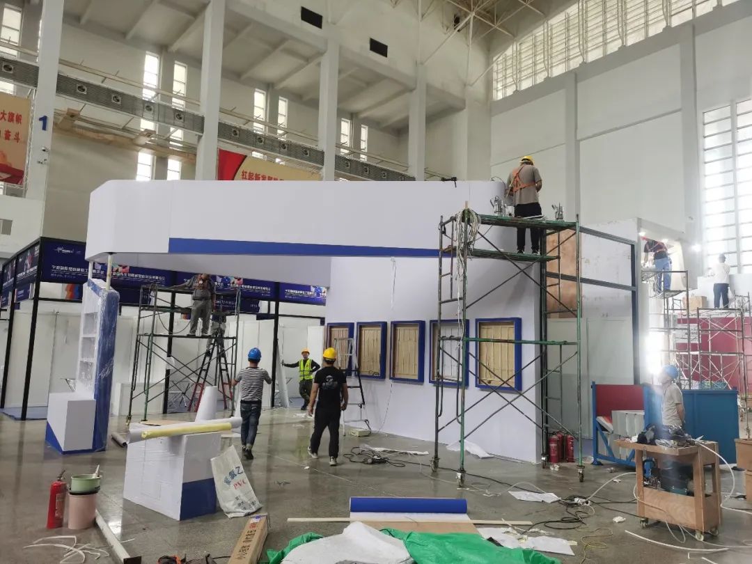 現(xiàn)場(chǎng)工作人員正在沖刺布展