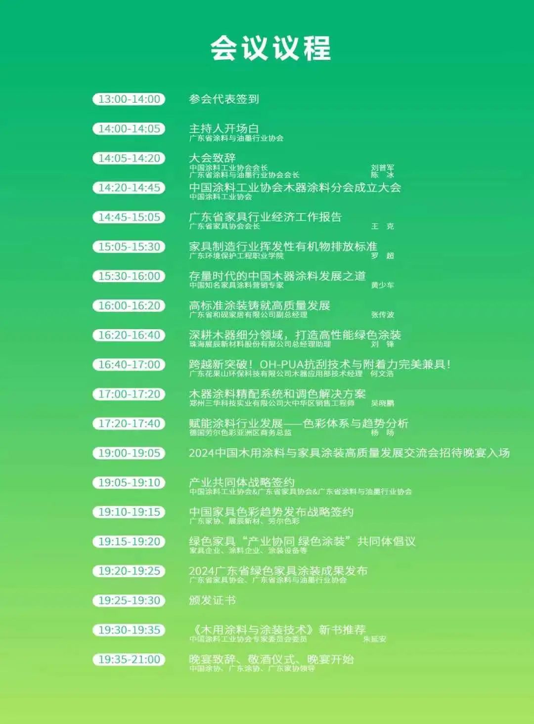 為期2天的會(huì)議全程干貨,聚焦當(dāng)下時(shí)政熱點(diǎn)、核心熱點(diǎn)解讀。7月30日,將聚焦CCC認(rèn)證、以及涂料油墨行業(yè)高質(zhì)量發(fā)展等重點(diǎn)內(nèi)容,同期還將舉辦廣東省涂料與油墨行業(yè)協(xié)會(huì)第九屆第四次會(huì)員代表大會(huì)、2024廣東涂料與油墨產(chǎn)業(yè)高質(zhì)量發(fā)展大會(huì)、廣東省涂料與油墨行業(yè)協(xié)會(huì)成立35周年慶典大會(huì)、2024木用涂料與家具涂裝高質(zhì)量發(fā)展峰會(huì)、廣東省綠色木用涂料涂裝品牌聯(lián)展、廣東省涂料與油墨行業(yè)協(xié)會(huì)第九屆第六次工作會(huì)議、廣東省涂料行業(yè)協(xié)會(huì)第九屆第四次會(huì)員大會(huì)答謝晚宴……。