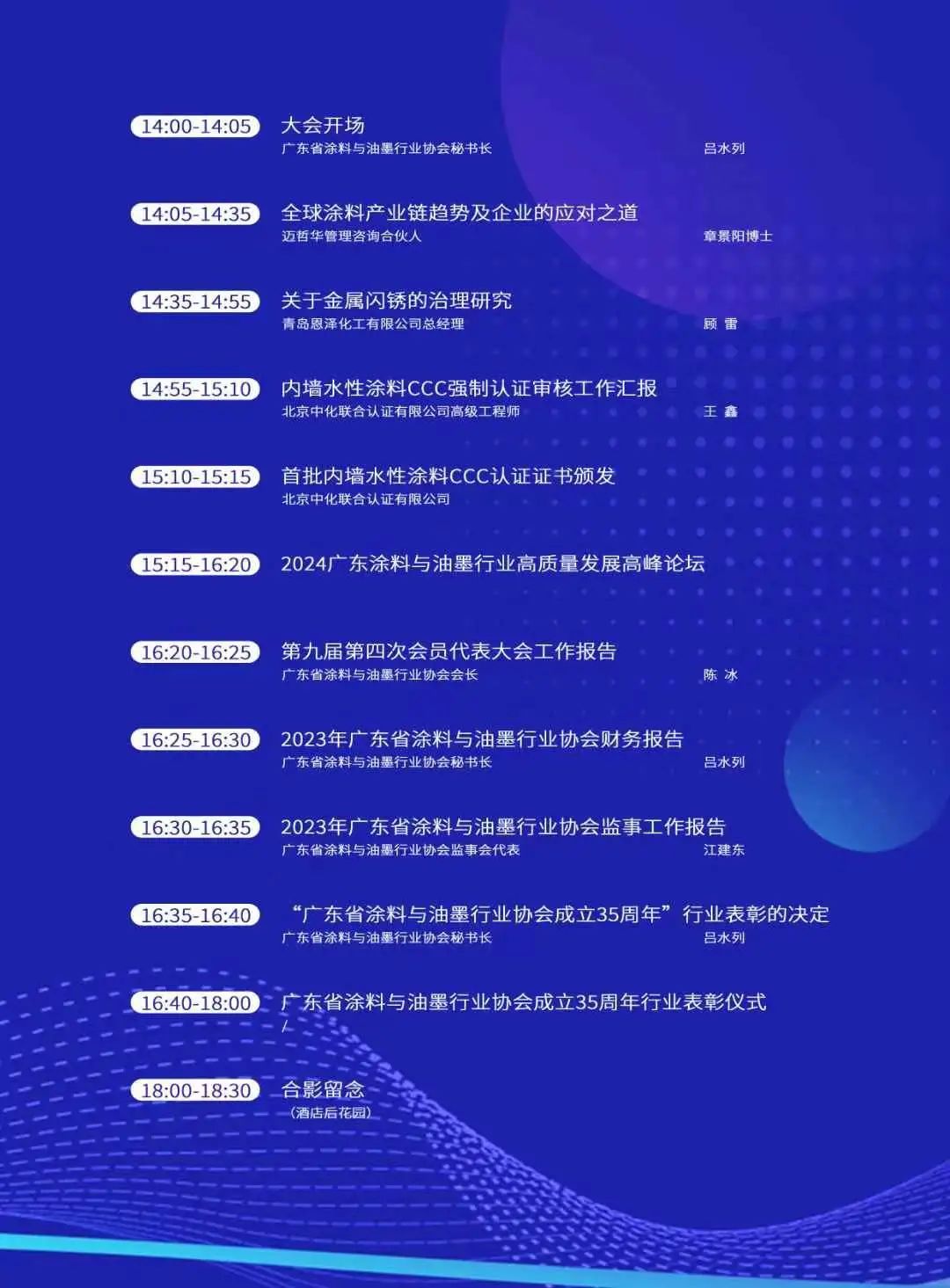 2024年,是中華人民共和國(guó)成立75周年,也是廣東省涂料與油墨行業(yè)協(xié)會(huì)成立的35周年,更是實(shí)施《廣東省涂料行業(yè)“十四五”發(fā)展規(guī)劃》的關(guān)鍵一年。會(huì)上,主辦方將通過(guò)聚集涂料與油墨行業(yè)的頂尖專家和從業(yè)者,共同探討在當(dāng)前市場(chǎng)環(huán)境下如何實(shí)現(xiàn)企業(yè)的生存與發(fā)展,分享成功的經(jīng)驗(yàn)和方法論,為企業(yè)提供實(shí)用的指導(dǎo)和解決方案!