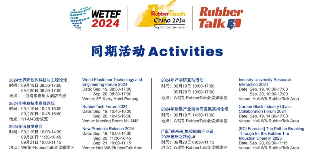 展會同期將舉辦RubberTalk 2024大型綜合性會議。大會將設世界彈性體科技與工程論壇、產業(yè)高峰論壇、信息發(fā)布會、產學研互動活動等多個特色板塊,旨在為橡膠行業(yè)全產業(yè)鏈提供更為完備的創(chuàng)新成果展示、業(yè)態(tài)發(fā)展趨勢、學術交流及人才交流平臺。更好地幫助展會貫徹“宣傳品牌,促進貿易”的核心宗旨,促進行業(yè)跨學科領域的交叉融合。