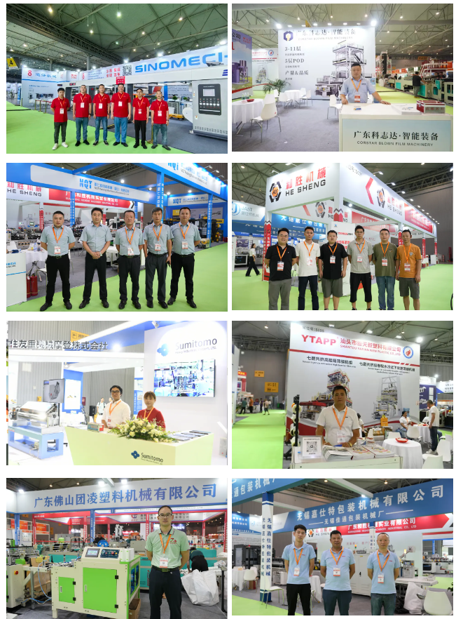 通澤帶來(lái)了A400H3系列多功能三合一無(wú)溶劑復(fù)合機(jī);科志達(dá)現(xiàn)場(chǎng)宣傳了五層共擠寬幅POD智能裝備 ;新樂華寶介紹了56層納米纏繞膜生產(chǎn)線 ;嘉仕特帶來(lái)了三邊理袋機(jī)/切刀口板;錢峰帶來(lái)了全自動(dòng)套袋圈口一體機(jī) ;國(guó)宏帶來(lái)了分切機(jī);漢浩展示了HHAO-600-S三邊封制袋機(jī);翔鳴展示塑料編織袋包裝設(shè)備(切/套 /縫/圈);和勝也帶來(lái)了新產(chǎn)品;中鳳現(xiàn)場(chǎng)演示全自動(dòng)扎把機(jī)和高速伺服吹膜機(jī);住友帶來(lái)了氣壓式自動(dòng)厚度控制T模頭;世科帶來(lái)了ABA 三層共擠吹膜機(jī);精誠(chéng)展示了雙向拉伸膜模頭;華麗達(dá)展示了新品納米308和越南填充原料。