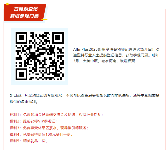 預登記 | AllinPlas2025鄭州塑博會參觀門票正式開領(lǐng)!更有豐富好禮等你領(lǐng)!