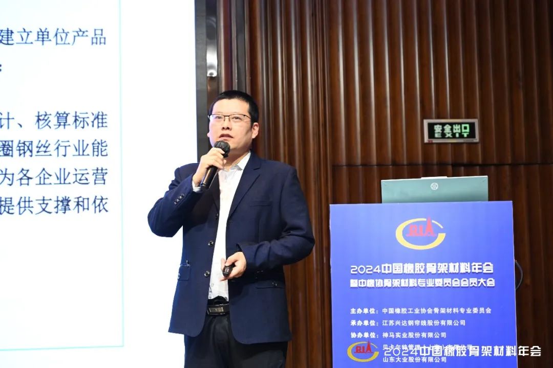 中國橡膠工業(yè)協(xié)會副秘書長兼骨架材料專業(yè)委員會秘書長于濤作理事會工作報(bào)告。兩年來,在嚴(yán)峻復(fù)雜的形勢和諸多超預(yù)期因素沖擊下,骨架材料行業(yè)面臨較大困難,行業(yè)內(nèi)卷嚴(yán)重,造成行業(yè)整體經(jīng)營壓力增大,利潤下滑,呈現(xiàn)增產(chǎn)不增利的局面。最近統(tǒng)計(jì)的2024年前三季度數(shù)據(jù)顯示,完成總產(chǎn)量413.16萬噸,增長11.57%。鋼簾線出口量66.78萬噸,增長23.47%,出口占比27.66%。胎圈鋼絲出口14.02萬噸,增長5.94%,占比16.44%。主要骨架材料產(chǎn)品出口均保持較高的增速,占比不斷增加。但行業(yè)利潤下降33.65%,整個(gè)行業(yè)銷售收入利潤率僅為2.55%,相比去年同期的3.7%,減少1.2個(gè)百分點(diǎn),遠(yuǎn)低于整個(gè)橡膠行業(yè)6.16%的平均值,只比炭黑行業(yè)高了一點(diǎn)。