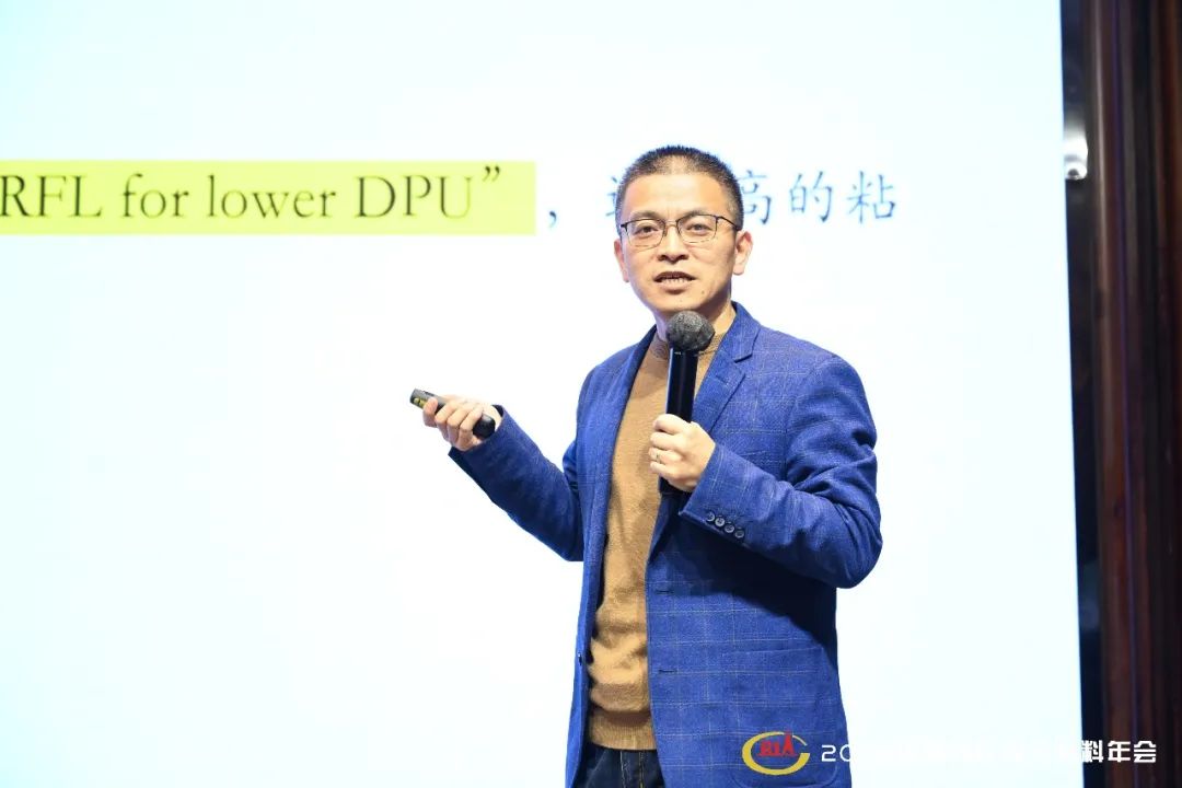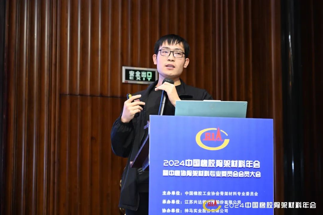 山東天說橡膠有限公司研發(fā)中心主任周億洋作了“2-乙烯基吡啶對丁苯吡膠乳性能及應(yīng)用影響”的報(bào)告。