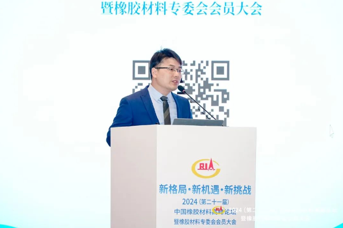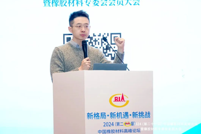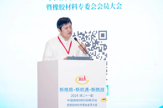 賽輪集團股份有限公司配方研發(fā)部副部長任衍峰作題為“輪胎對橡膠材料(天然橡膠及合成橡膠)的需求建議”的報告。
