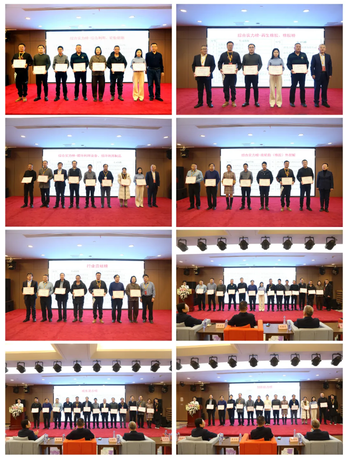 隨后,《中國輪胎資源綜合利用》雜志社舉辦了2024年度中國輪胎循環(huán)利用行業(yè)排行榜榜單發(fā)布及頒獎儀式。本次行業(yè)排行榜發(fā)布的榜單有中國輪胎循環(huán)利用行業(yè)“綜合實力排行榜”、“行業(yè)貢獻排行榜”、“綠色先鋒排行榜”、“創(chuàng)新能力排行榜”、“成長進步排行榜”,其中“綜合實力排行榜”細分為“綜合實力榜-綜合利用”、“綜合實力榜-輪胎翻新”、“綜合實力榜-橡膠粉”、“綜合實力榜-制品”、“綜合實力榜-再生橡膠”、“綜合實力榜-廢輪胎(橡膠)熱裂解”和“綜合實力榜-設備”七個領域。
