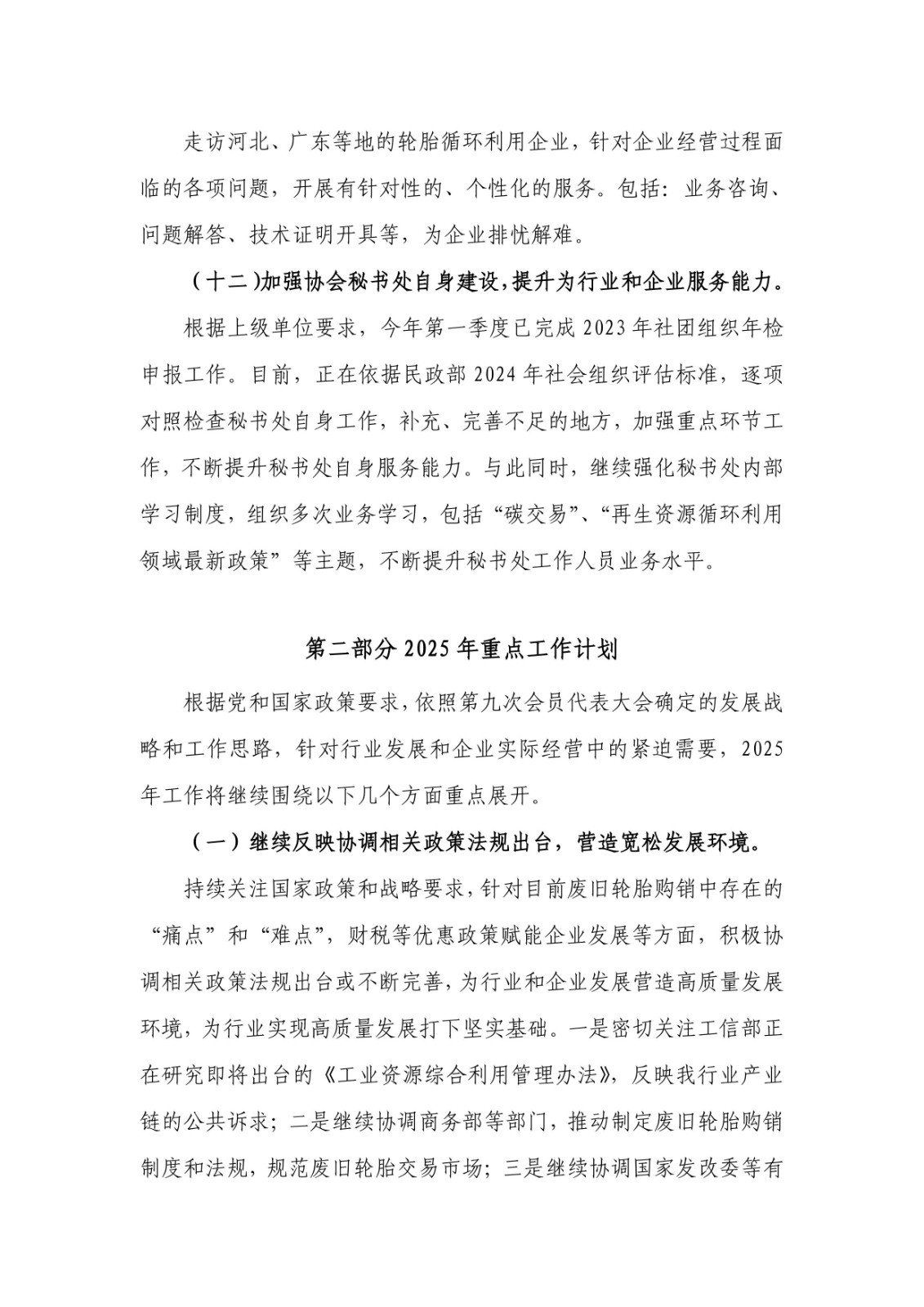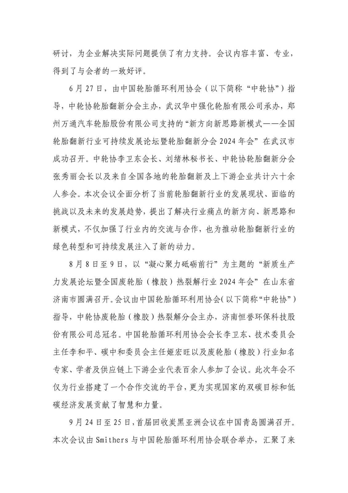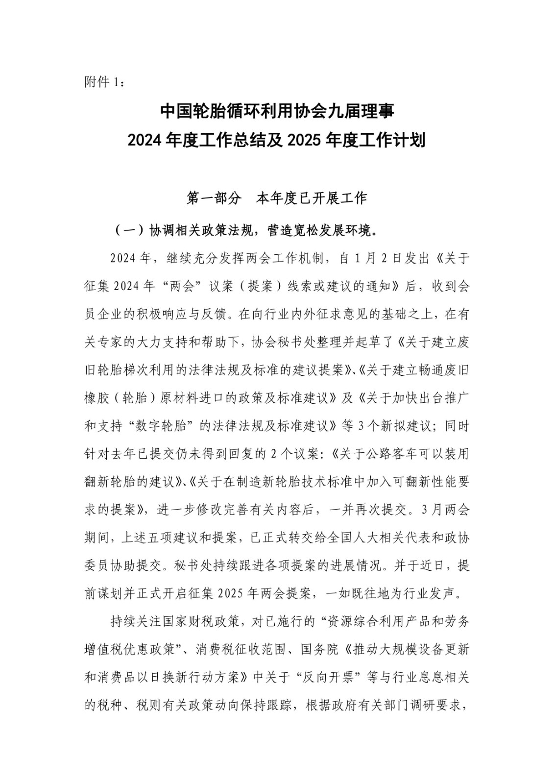 1. 《中國輪胎循環(huán)利用協(xié)會九屆理事2024年度工作總結(jié)及2025年度工作計劃》;