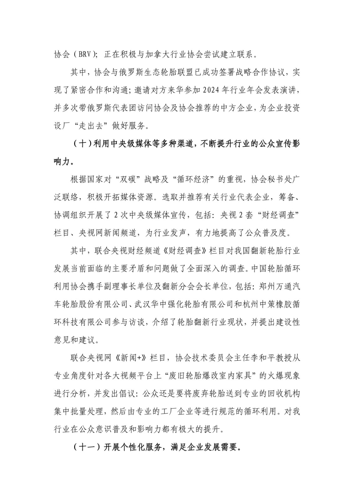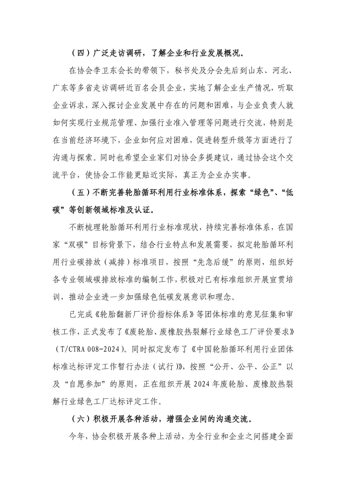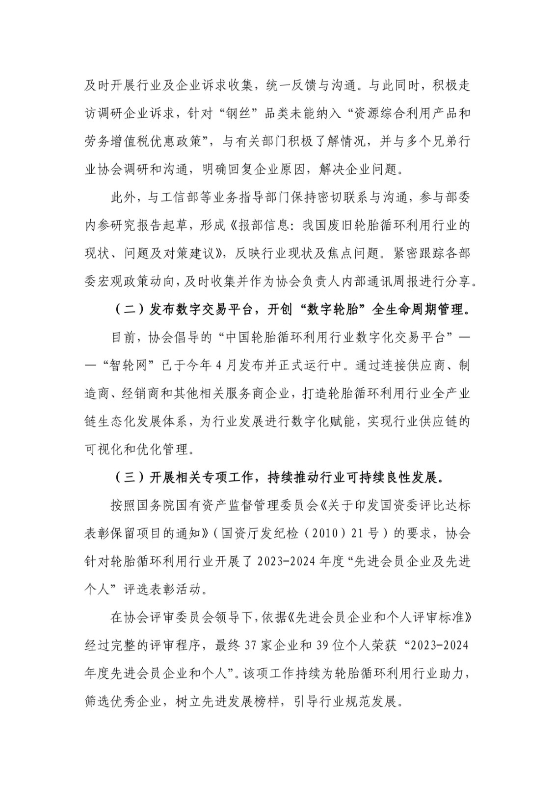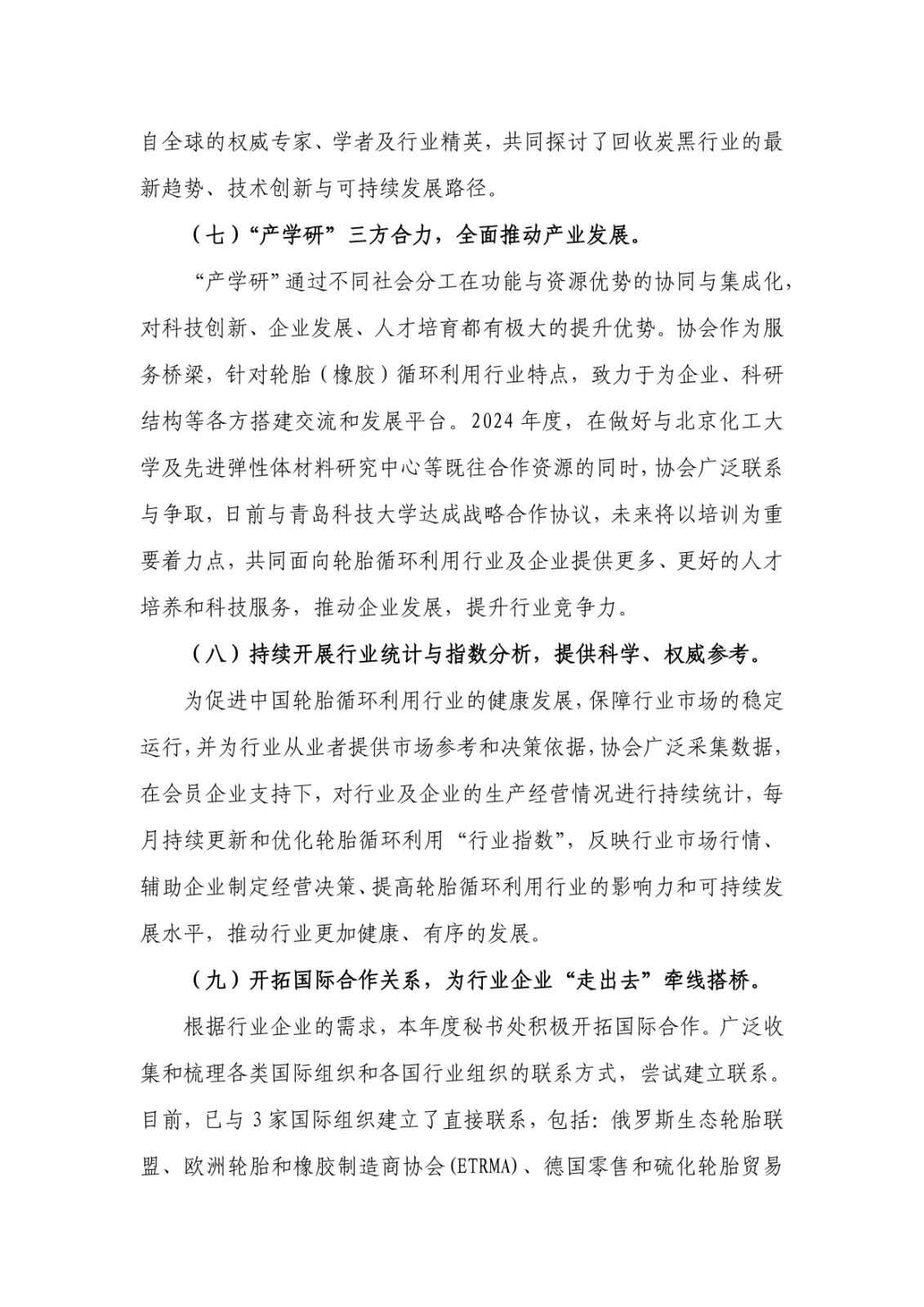 1. 《中國輪胎循環(huán)利用協(xié)會九屆理事2024年度工作總結(jié)及2025年度工作計劃》;