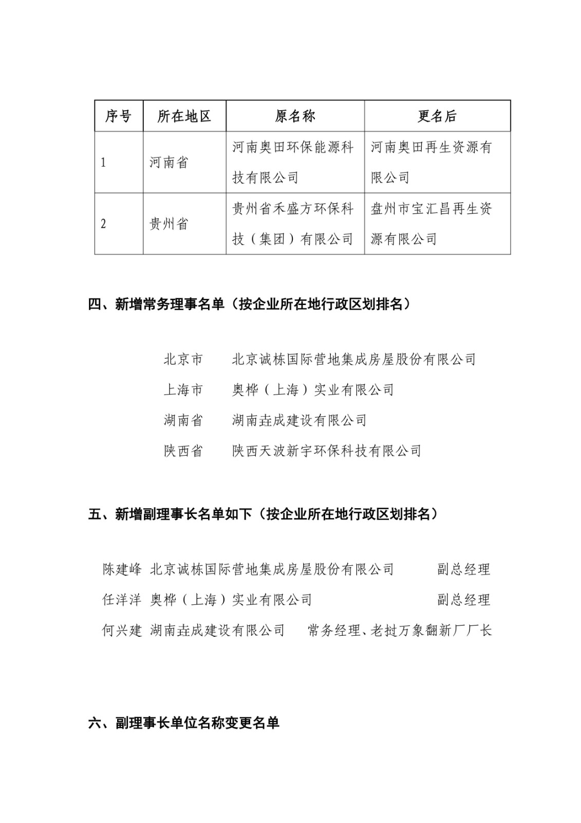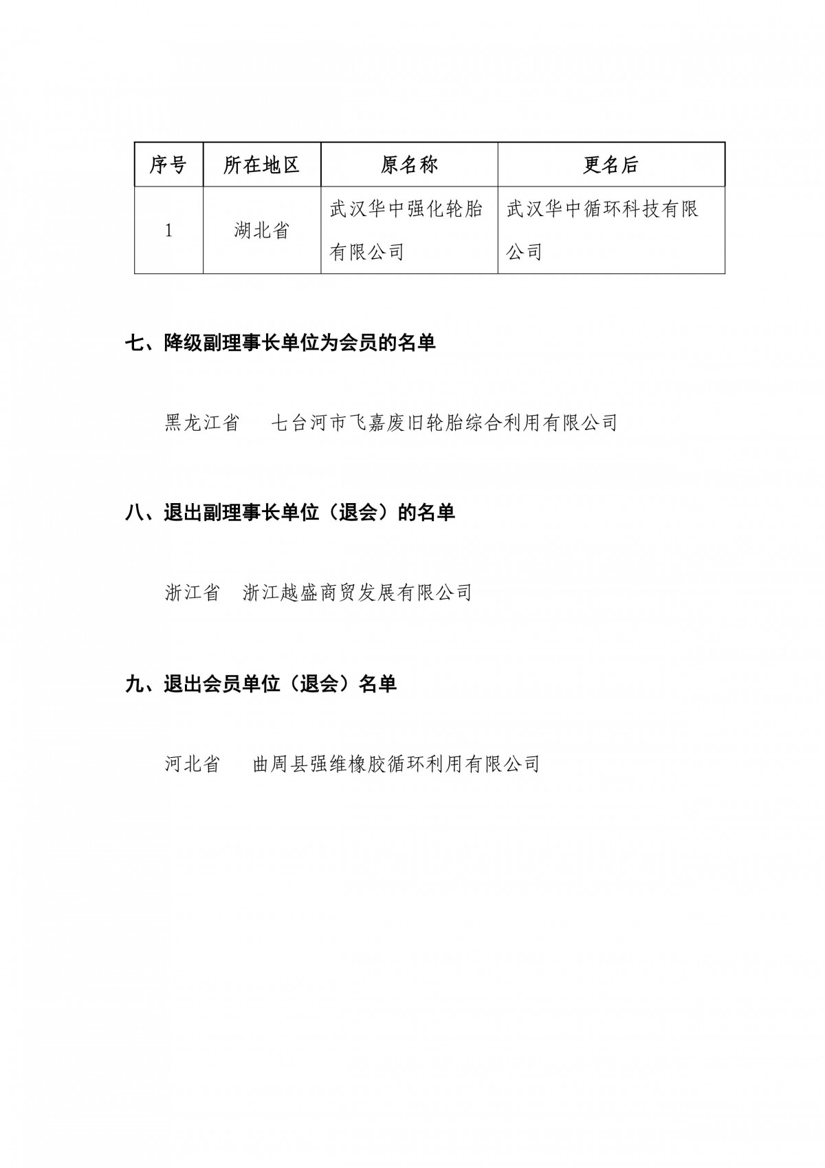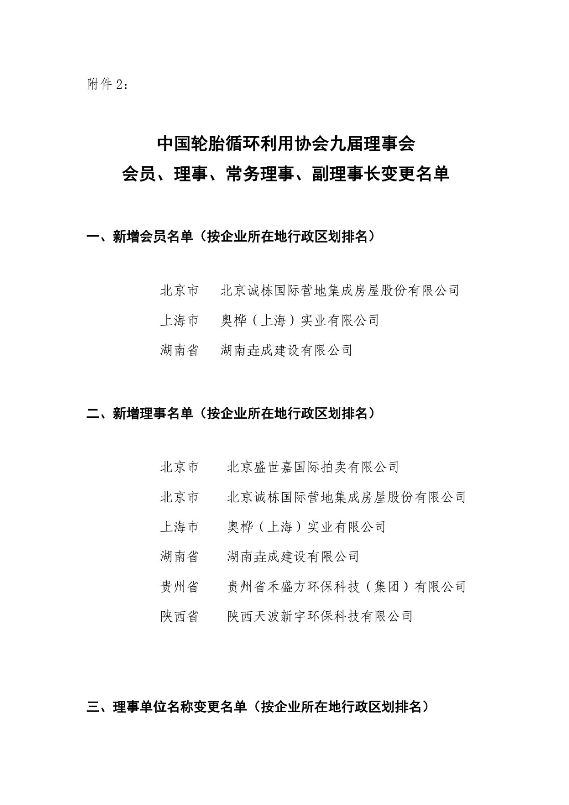 2.《中國輪胎循環(huán)利用協(xié)會九屆理事會會員、理事、常務(wù)理事、副理事長變更名單》。