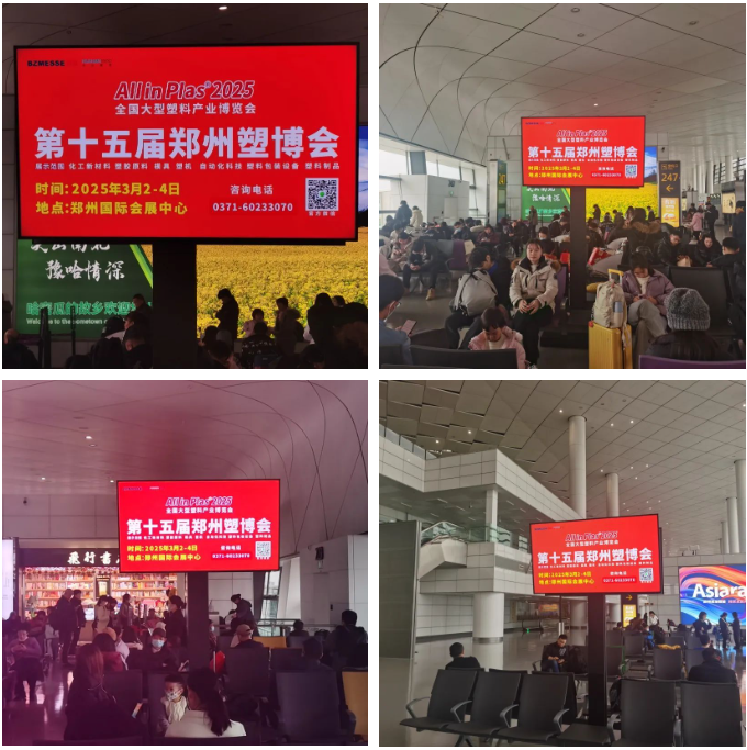 投入巨資 | 博展?2025鄭州塑博會強勢霸屏鄭州機場、高鐵站,鎖定千萬人次流量!