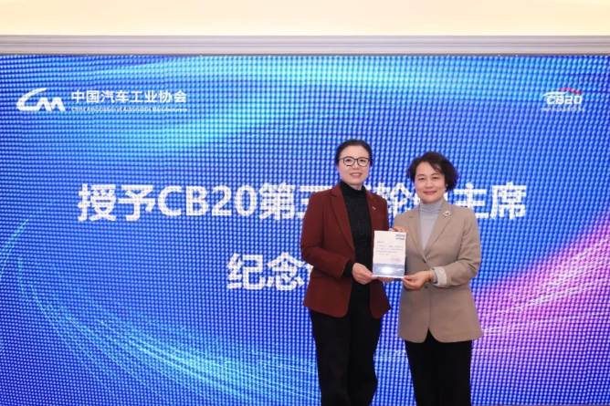 根據(jù)聯(lián)席會工作條例,會議進(jìn)行了輪值主席換屆交接儀式。為感謝尹捷女士在第三任輪值主席期間所做的貢獻(xiàn),柳燕女士代表中國汽車工業(yè)協(xié)會以及CB20聯(lián)席會,為尹捷女士頒發(fā)CB20第三任輪值主席紀(jì)念證書。