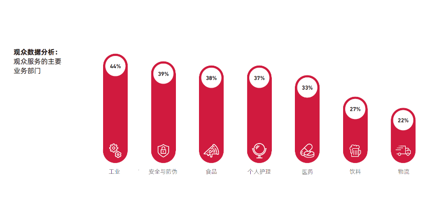 2023上屆展會觀眾服務(wù)的業(yè)務(wù)部門,92%的觀眾參與了企業(yè)的購買決策