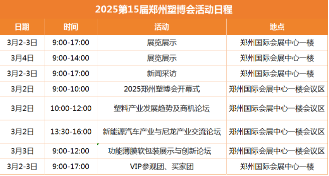 AllinPlas2025鄭州塑博會(huì)為期3天,