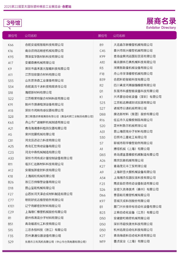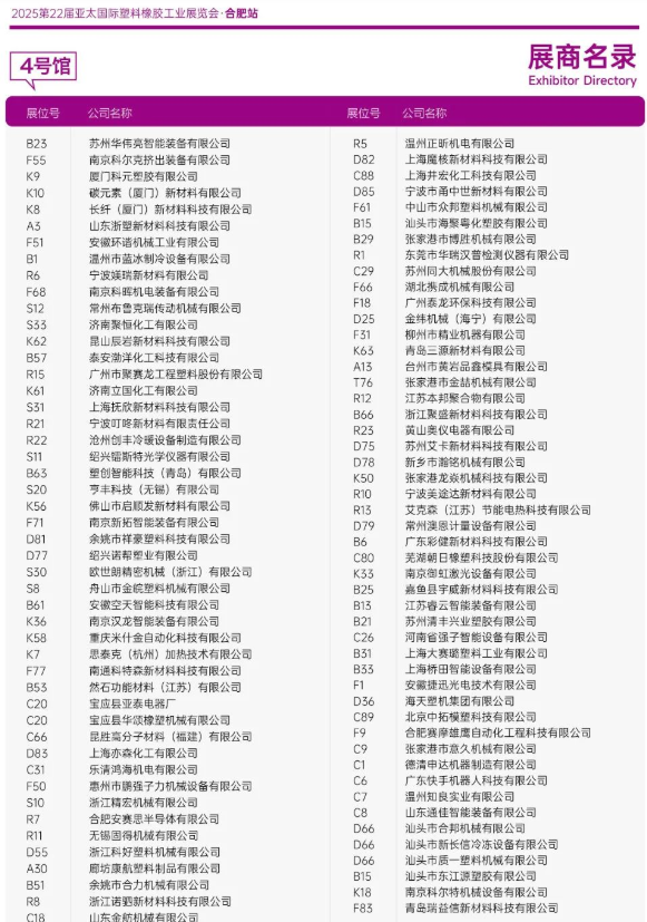 倒計(jì)時(shí)7天!2025亞太橡塑展?合肥站:展商名錄大公開(kāi),塑料橡膠盛宴即將開(kāi)啟!