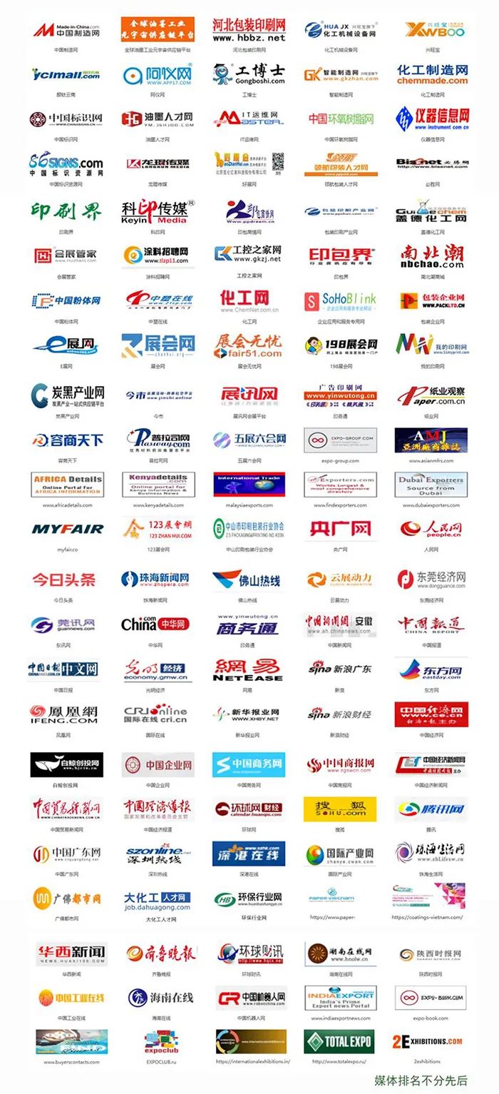 八、立體傳播,線上+線下傳播矩陣亞洲油墨展已與200+媒體達(dá)成合作協(xié)議,將結(jié)合視頻、圖文等宣傳方式,實現(xiàn)多領(lǐng)域全方位報道,達(dá)成良好宣傳效果。同時,組委會也將通過視頻號、公眾號、抖音、快手等自媒體平臺進(jìn)行宣傳推流。