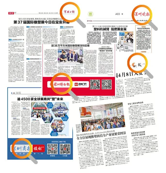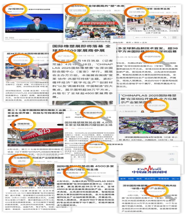 ▲感謝新華網、央廣網、中國科技網、深圳特區(qū)報、深圳商報、深視新聞、羊城晚報、深圳晚報、晶報、寶安日報、粵港澳都市報、中國商務新聞網、深圳新聞網、898早新聞等多家媒體,對CHINAPLAS的大力報道。(排名不分先后)