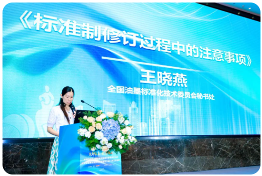 全國油墨標(biāo)準(zhǔn)化技術(shù)委員會秘書處王曉燕講解了標(biāo)準(zhǔn)制修訂過程中的關(guān)鍵注意事項(xiàng),強(qiáng)調(diào)從立項(xiàng)、起草、征求意見到審查各環(huán)節(jié)的規(guī)范性要求。
