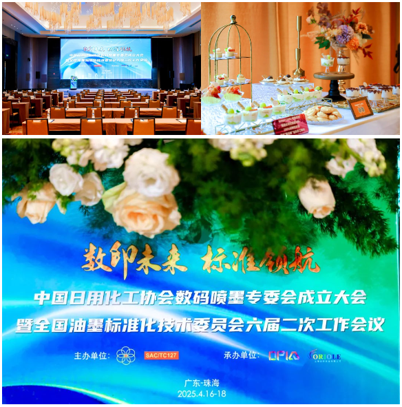 2025年4月16-18日,備受矚目的“中國日用化工協(xié)會數(shù)碼噴墨專委會成立大會暨全國油墨標(biāo)準(zhǔn)化技術(shù)委員會六屆二次工作會議”在廣東珠海成功舉辦。這是一場匯聚行業(yè)精英、凝聚行業(yè)力量的盛會,為數(shù)碼噴墨行業(yè)的發(fā)展注入了新的活力,描繪了數(shù)印未來與標(biāo)準(zhǔn)領(lǐng)航的宏偉藍(lán)圖。