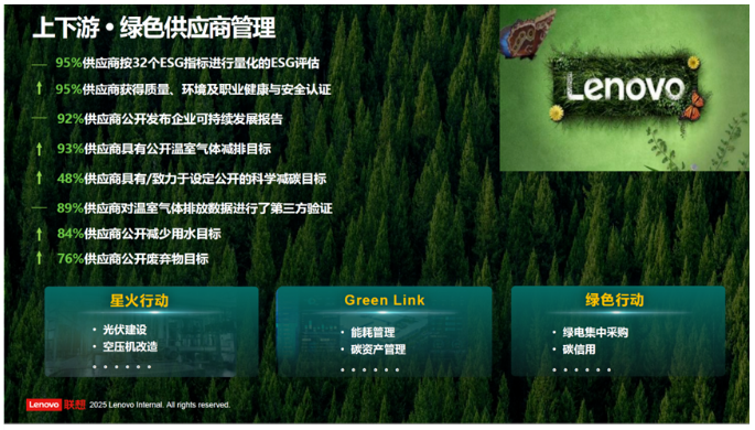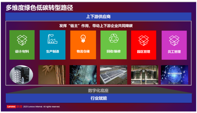 盛總提到,聯(lián)想始終堅持透明的ESG信息披露,也在一體多面,打造聯(lián)想“1+N” 可持續(xù)信息披露體系,全球供應(yīng)鏈助力聯(lián)想成為ESG領(lǐng)跑者。他同時給與會者介紹了聯(lián)想集團(tuán)從多維度綠色低碳轉(zhuǎn)型路徑,那就是 發(fā)揮“鏈主”作用,帶動上下游企業(yè)共同降碳。