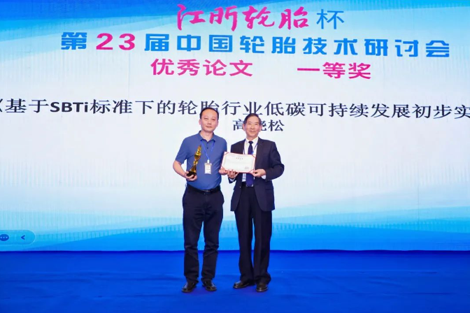 經(jīng)與會代表投票和專家評審委員會審議,大會評選出10篇優(yōu)秀論文。貴州輪胎股份有限公司高曉松的《基于科學(xué)碳目標倡議(SBTi)標準下的輪胎行業(yè)低碳可持續(xù)發(fā)展初步實踐》榮獲優(yōu)秀論文一等獎并獲“江昕輪胎杯”,江蘇江昕科技股份有限公司王明江等的《基于纖維取向調(diào)控的橡膠隱形骨架材料設(shè)計與免充氣空心輪胎仿生結(jié)構(gòu)研究》等3篇論文榮獲優(yōu)秀論文二等獎,山東華盛橡膠有限公司陳建軍等的《未來輪胎可持續(xù)發(fā)展技術(shù)及探討》等6篇論文榮獲優(yōu)秀論文三等獎。