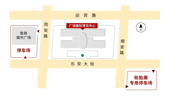 1)樂安大街和順安路交叉口東南角輪胎展專用停車場(圖上紅色區(qū)域)