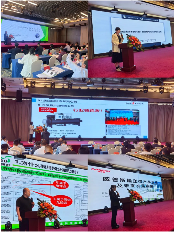 山東威普斯橡膠股份有限公司韓玉麗分享《淺談?shì)斔蛶У陌l(fā)展現(xiàn)狀及未來(lái)趨勢(shì)》,結(jié)合企業(yè)實(shí)踐,展望輸送帶智能化、綠色化發(fā)展前景。賽輪集團(tuán)股份有限公司副總裁張曉軍在《關(guān)于當(dāng)前輪胎技術(shù)發(fā)展的探索與思考》報(bào)告中,分享企業(yè)在輪胎技術(shù)研發(fā)的實(shí)踐經(jīng)驗(yàn)與創(chuàng)新成果。高特威爾檢測(cè)儀器(青島)有限公司技術(shù)支持應(yīng)用主管陳妍妍帶來(lái)《輪胎橡膠材料新型檢測(cè)技術(shù)分享》,為企業(yè)提升產(chǎn)品質(zhì)量提供技術(shù)支撐。格力建筑環(huán)境與節(jié)能研究院暖通工程師黎小梅以《格力供冷熱能設(shè)備賦能橡膠輪胎產(chǎn)業(yè)低碳轉(zhuǎn)型》為題,介紹助力行業(yè)綠色發(fā)展的解決方案。上海鋭巴新材料科技有限公司技術(shù)服務(wù)總監(jiān)、高工曾凡偉作《橡膠用預(yù)分散造粒助劑的優(yōu)點(diǎn)及分行業(yè)應(yīng)用橡膠配方介紹》的報(bào)告,為企業(yè)優(yōu)化配方提供專(zhuān)業(yè)指導(dǎo)。