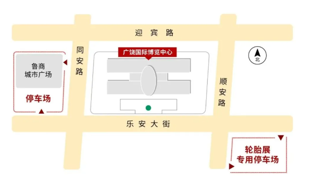 1)樂(lè)安大街和順安路交叉口東南角輪胎展專(zhuān)用停車(chē)場(chǎng)(圖上紅色區(qū)域)
