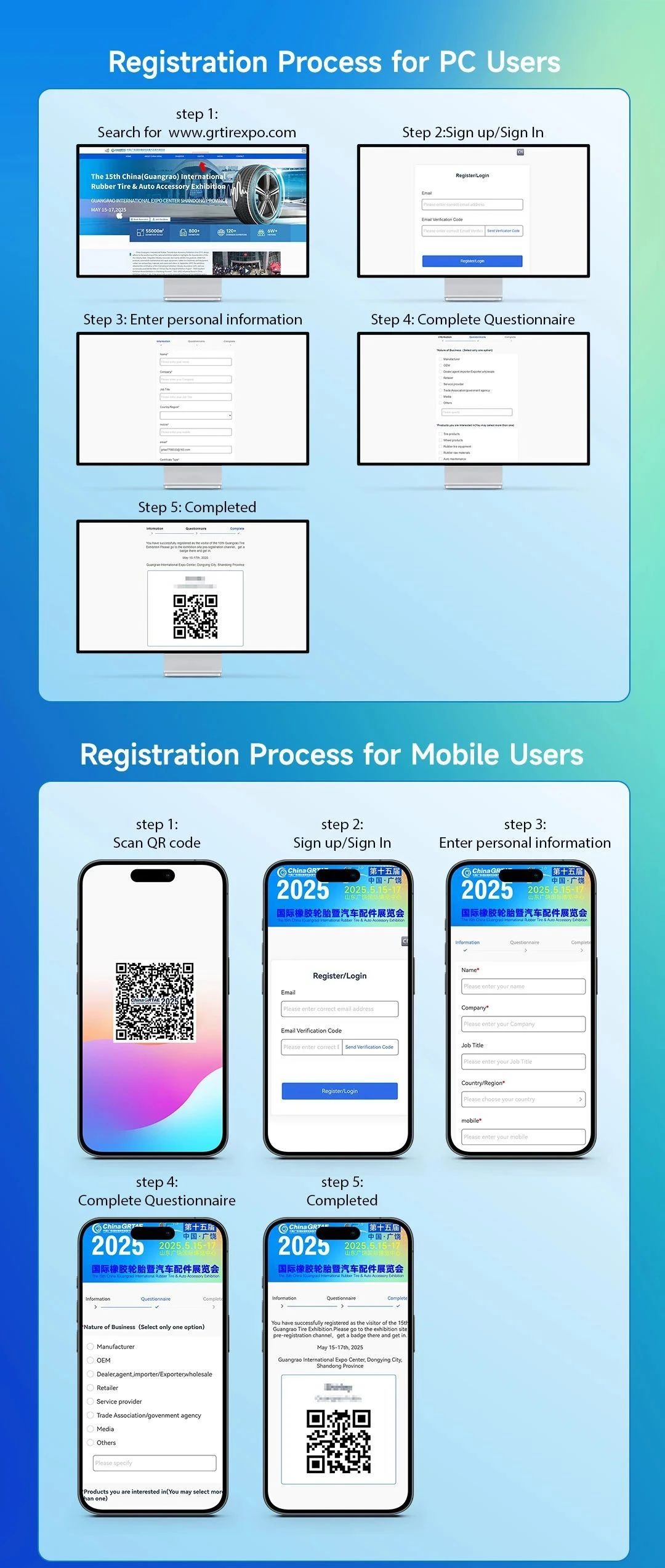 已完成實名登記的觀眾:請務(wù)必攜帶好您的身份證原件,憑二維碼打印紙質(zhì)胸卡,通過安檢后,掃碼過閘機(jī)進(jìn)展廳。