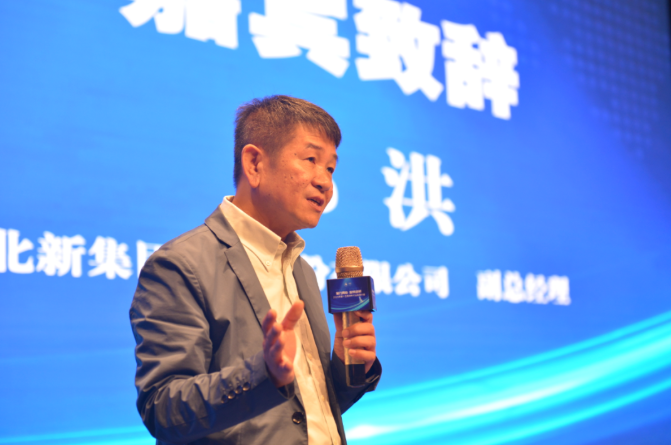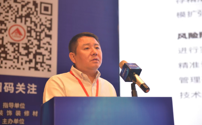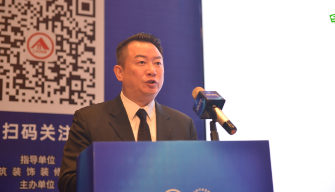 中國建筑裝飾裝修材料協(xié)會副會長、北新建材黨委委員、副總經(jīng)理邱洪上臺致辭。邱洪表示, 當前建材行業(yè)正在進行產(chǎn)業(yè)升級,產(chǎn)業(yè)升級今后的方向是低碳化、高端化、數(shù)字化、國際化。