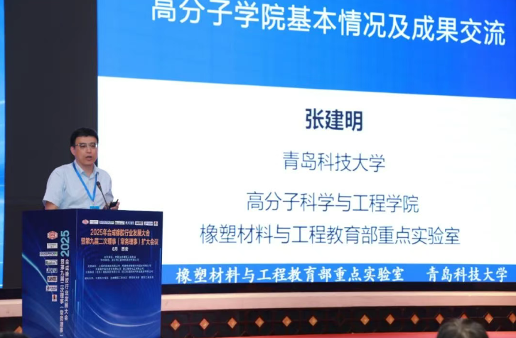 會(huì)上,青島科技大學(xué)多位教授率先分享了該校在合成橡膠領(lǐng)域的核心技術(shù)突破。其中,張春雨教授代表高分子科學(xué)與工程學(xué)院院長兼橡塑材料與工程教育部重點(diǎn)實(shí)驗(yàn)室主任張建明,詳細(xì)介紹了高分子學(xué)院的整體情況,并重點(diǎn)推介了學(xué)院多個(gè)團(tuán)隊(duì)的代表性研究成果。包括張學(xué)全教授團(tuán)隊(duì)在高活性配位可控聚合制備窄分布支化稀土順丁橡膠及其產(chǎn)業(yè)化、三元乙丙橡膠新型催化劑方面的進(jìn)展;華靜教授團(tuán)隊(duì)研發(fā)的鉬系高乙烯基丁二烯橡膠(鉬系橡膠)技術(shù);賀愛華教授團(tuán)隊(duì)在耐疲勞反式橡膠系列新材料關(guān)鍵技術(shù)及產(chǎn)業(yè)化領(lǐng)域的成果;以及王輝教授團(tuán)隊(duì)關(guān)于高性能特種橡膠 “氫化丁腈橡膠” 關(guān)鍵技術(shù)及其產(chǎn)業(yè)化、生物基填料(纖維素納米晶)的研究突破。