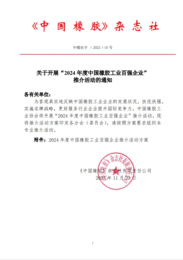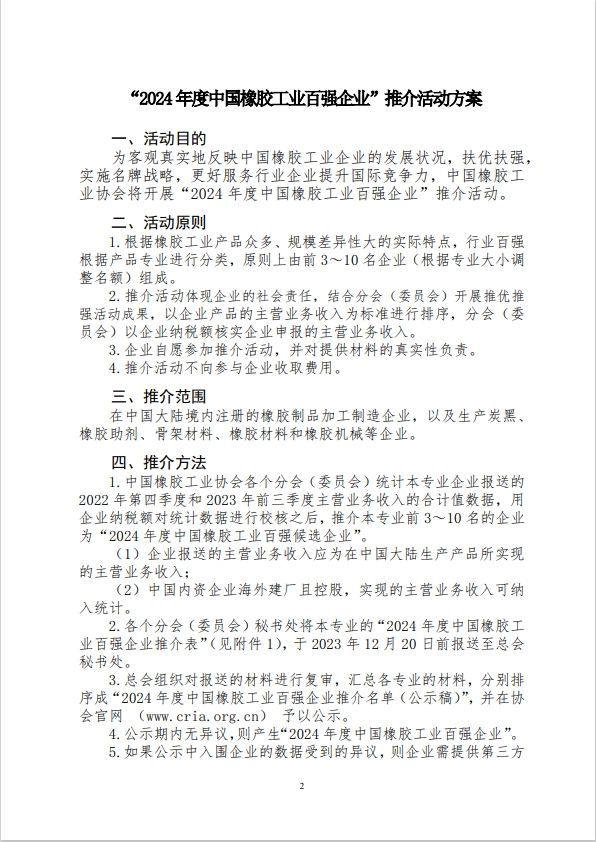 2024年度中國橡膠工業(yè)百強(qiáng)企業(yè)評(píng)選啟動(dòng)