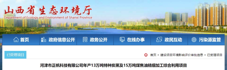 山西:13萬(wàn)噸炭黑與15萬(wàn)噸焦油項(xiàng)目環(huán)評(píng)進(jìn)入受理階段
