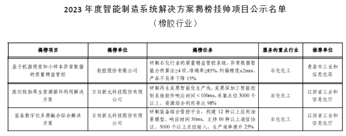 揭榜掛帥!橡膠業(yè)兩家領(lǐng)軍企業(yè)三項目上榜工信部榜單