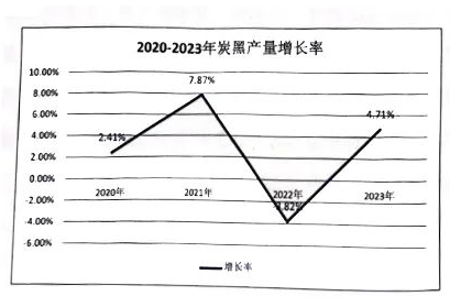 數(shù)據(jù)顯示,從2020年至2023年,炭黑產(chǎn)量的增長(zhǎng)率呈現(xiàn)出“之”型增長(zhǎng)。在經(jīng)歷了疫情幾年的波動(dòng)后,至2023年炭黑產(chǎn)量保持了一個(gè)長(zhǎng)態(tài)的增長(zhǎng)率,預(yù)計(jì)近幾年炭黑產(chǎn)量均將保持微增長(zhǎng)的狀態(tài)。
