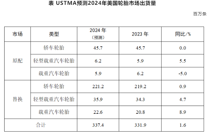 USTMA預(yù)測:2024年美國輪胎出貨量將小幅增長
