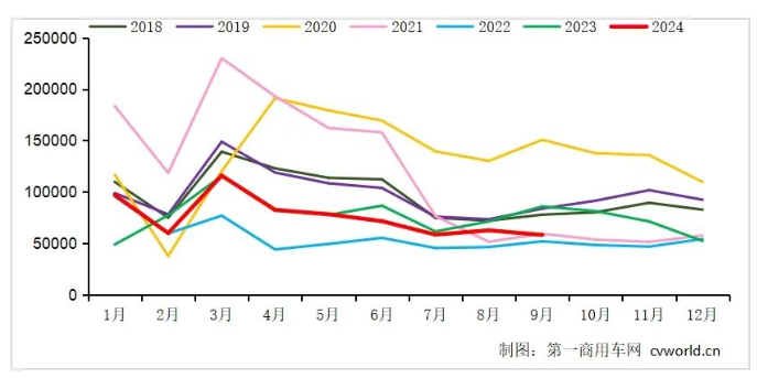 【炭黑產(chǎn)業(yè)網(wǎng)】10月9日消息,近期,重卡行業(yè)面臨嚴峻挑戰(zhàn),9月份市場表現(xiàn)未達預期。據(jù)數(shù)據(jù)顯示,2024年9月,我國重卡市場銷量約為5.8萬輛(基于批發(fā)統(tǒng)計,涵蓋出口及新能源車型),與8月相比下降了7%,較去年同期8.57萬輛的銷量更是大幅減少了32%,減量約2.8萬輛。回顧近八年數(shù)據(jù),9月銷量僅略高于2022年同期的5.18萬輛。累計至9月,我國重卡市場總銷量約68.3萬輛,年內(nèi)累計增速首次轉(zhuǎn)負,降幅約為3%,市場形勢不容樂觀。